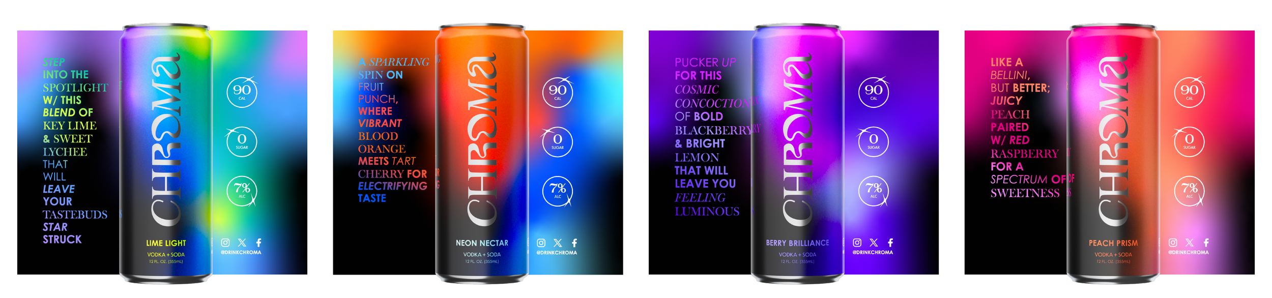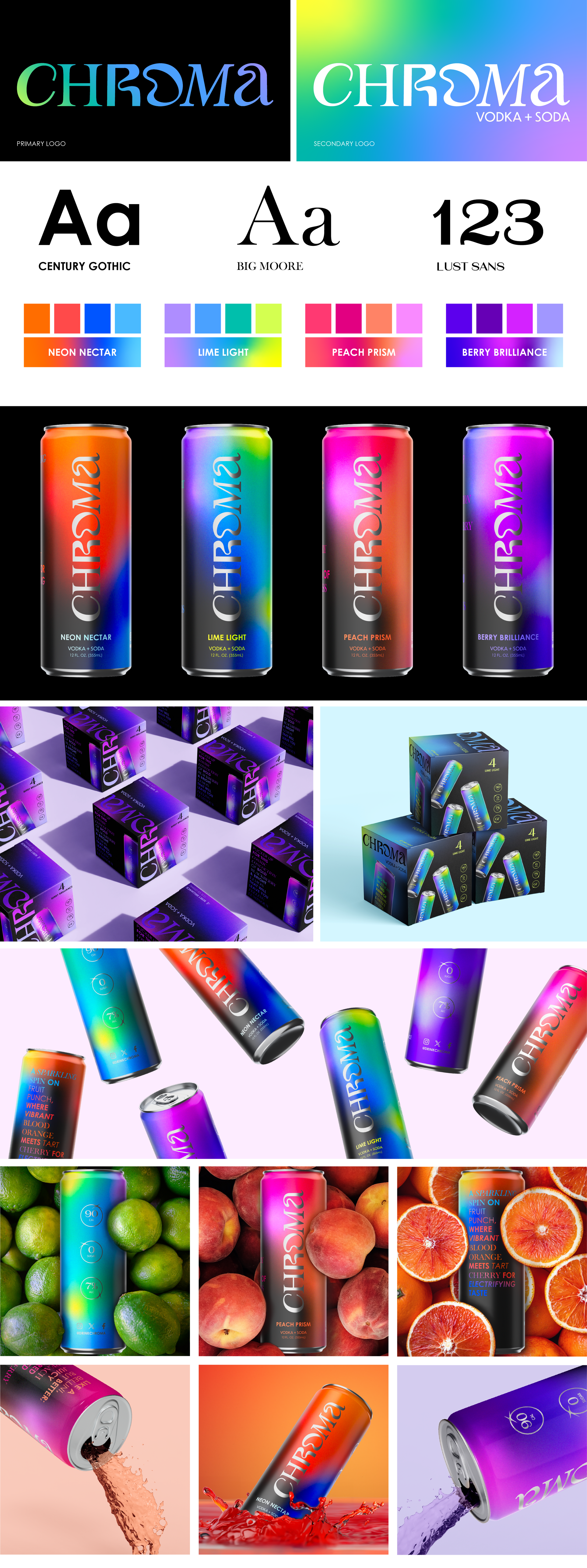 Overview: Chroma is a canned vodka soda drink, with flavors and packaging inspired by the well known Blink festival of art and light in Cincinnati, Ohio. This festival showcases the work from talented artists and is a memorable experience for all who attend.