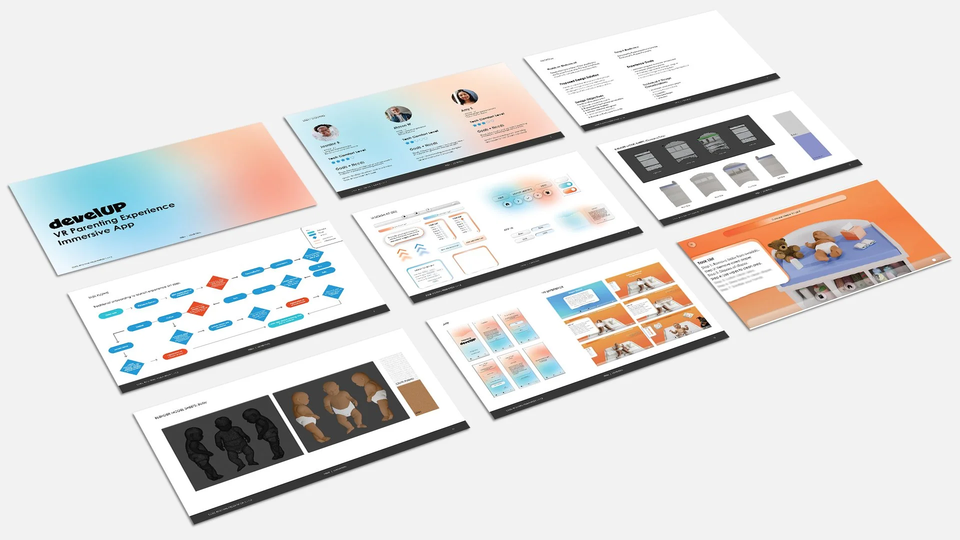 Overview: develUP provides real life parenting scenarios for expectant or current parents to gain experience and guidance in several areas. We selected one of the UN17 goals and addressed it throughout the design process. This immersive experience is based in VR with an onboarding app through your phone.