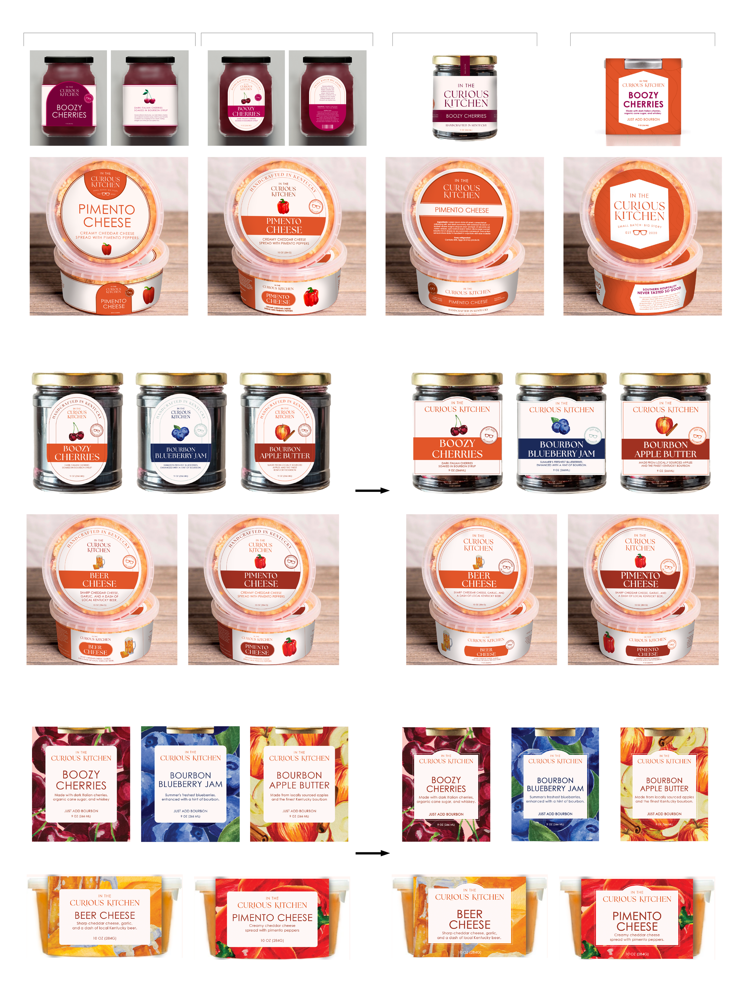 The first step of this process was to complete a comprehensive (50 pages to be exact) luxury brand audit featuring competitors and the current brand itself. I researched direct in-store and online competitors to see how they present themselves as an elevated food brand. This list included well-known companies like Blackberry Farm and Stonewall Kitchen. I also looked into brands who create a unique system across their products, like Jeni's Ice Cream and Ghia.