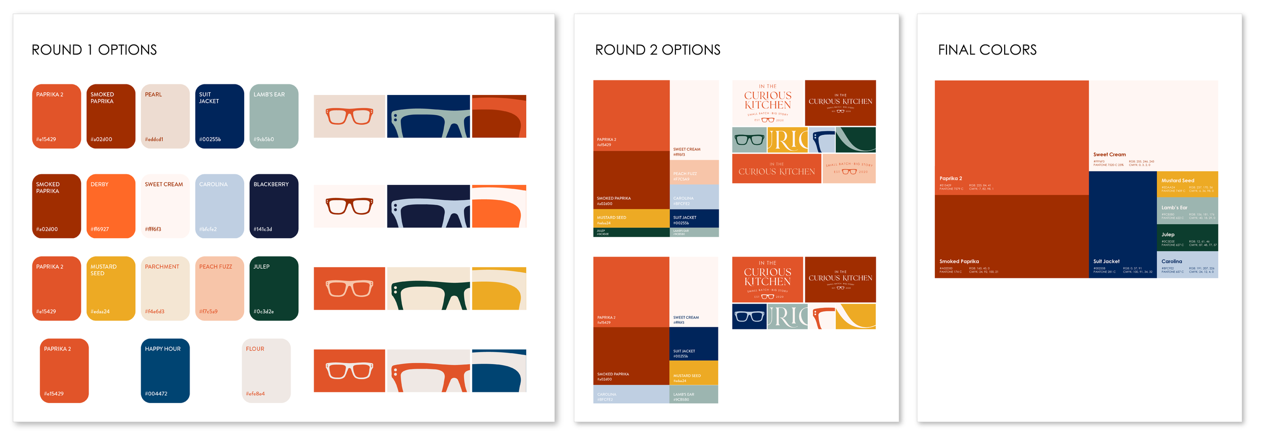 Now that the logo was set, I moved on to create brand guidelines that matched its energy. I knew how iconic the original Paprika color was to the company, and wanted to update that and expand to find colors to compliment it. The final palette is like the original palette, but after a makeover and some newfound pizazz.