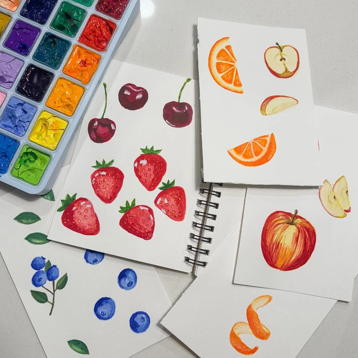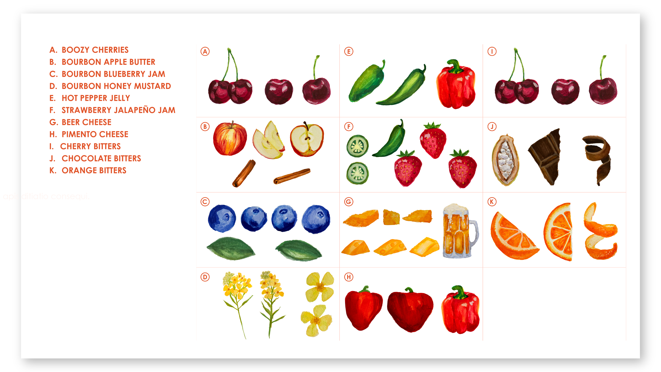 After the gouache style was selected, I dove into visualizing the flavor profiles of each SKU. I hand painted the fruits, spices, vegetables, and other flavors that make up each of her products. The products have such bold and memorable flavors, so the illustrations needed to match that energy!